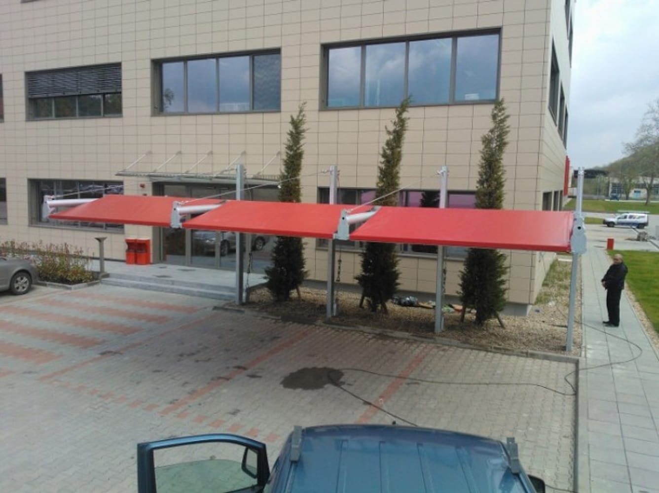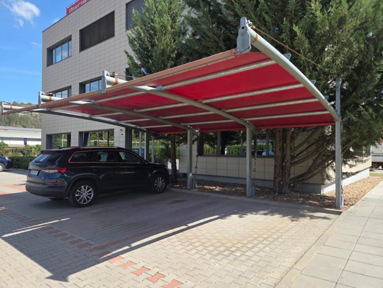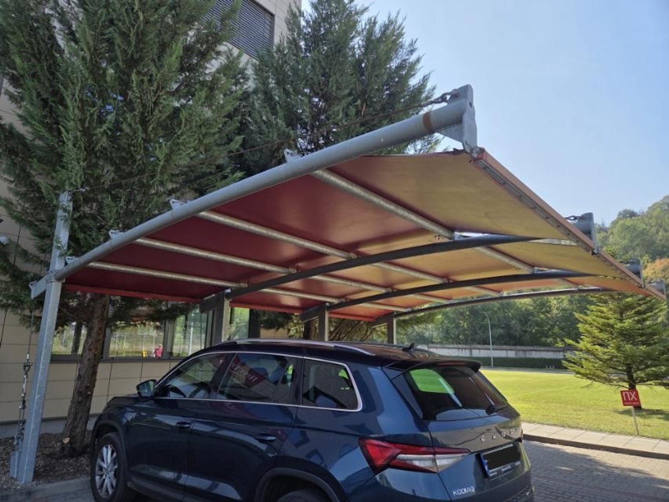Το σκίαστρο καλύπτει τρεις θέσεις στάθμευσης και είναι τοποθετημένο ακριβώς μπροστά από την κεντρική είσοδο του διοικητικού κτιρίου. Η κατασκευή ξεχωρίζει για την ακρίβεια και την προσοχή στη λεπτομέρεια, προσαρμοσμένη στις λειτουργικές και αισθητικές ανάγκες του πελάτη.
