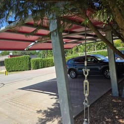 Οι πρόσφατες φωτογραφίες από το 2025 δείχνουν μια κατασκευή σε εξαιρετική κατάσταση — χωρίς ίχνη διάβρωσης, παραμορφώσεων ή φθαρμένων στοιχείων. Πάνω από δέκα χρόνια μετά την εγκατάσταση, το σκίαστρο διατηρεί τη σταθερότητα και την αισθητική του, επιβεβαιώνοντας την ποιότητα της κατασκευής και την ανθεκτικότητα των υλικών.